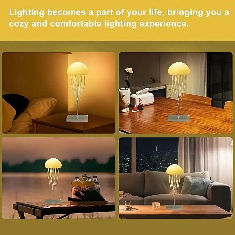 Aurora Mood Light, Dynamic Jellyfish LED Lamp, RGB Gradient, Voice Control, Hanging Indoor Light, Eye-Friendly Warm Light, Sound Activated, Rechargeable Battery, USB Dual Power, Plastic Material, Button Switch, ≤36V, 600mAh Battery Capacity